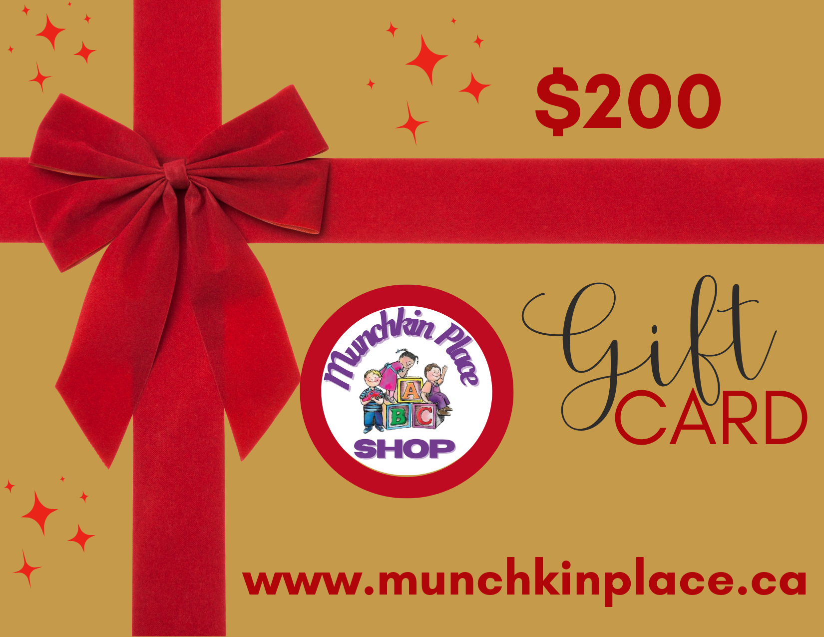 Looking for that perfect gift? A Munchkin Place Shop gift card is a wonderful way to show that you care. All Munchkin Place Shop gift cards are environmentally friendly. To support sustainability all Gift Cards will be issued via email. Please note that Gift Cards are only available for the Munchkin Place Shop. Gift cards may not be applied to any Munchkin Place Educational Programs.